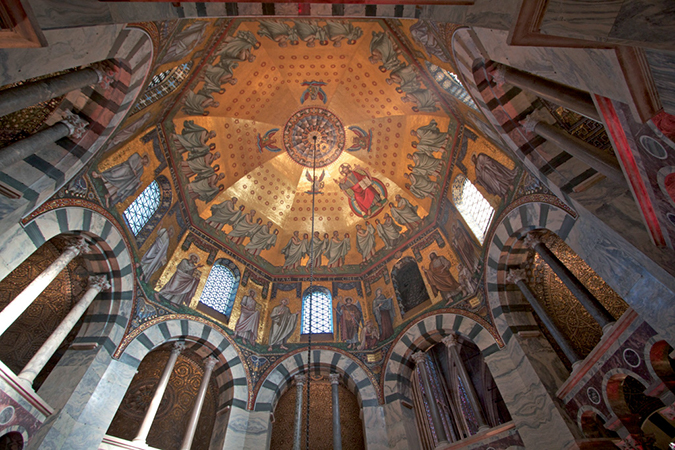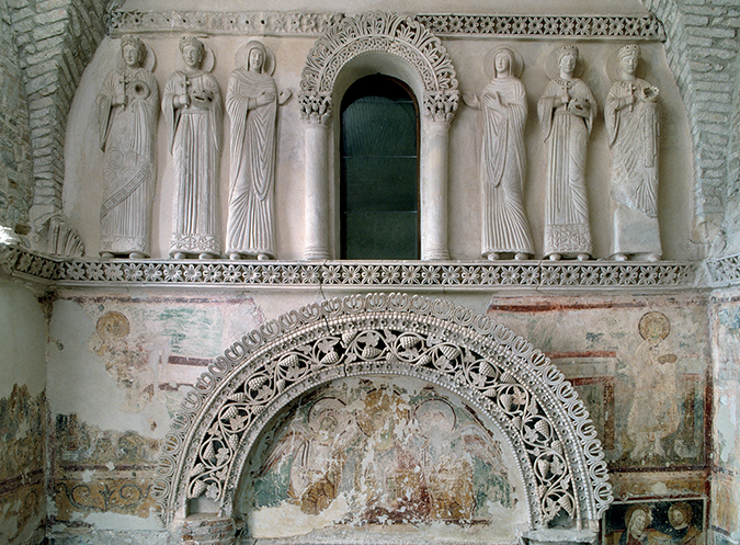 Nel 568, i Longobardi, popolazione nomade proveniente dall’Europaorientale, invasero l’Italia, guidati dal re Alboino. Conquistarono rapidamente le regioni settentrionali, estendendo successivamente il proprio dominio in Toscana, Umbria e nei territori del Ducato di Benevento fino al 774. La regina Teodolinda, tra VI e VII secolo, favorì l’integrazione dei Longobardi con la popolazione locale, in primo luogo attraverso la loro conversione al Cristianesimo, cui corrispose, in ambito artistico, la fusione tra elementi latini e germanici. Con l’incoronazione di Carlo Magno a imperatore del Sacro Romano Impero, la notte di Natale dell’anno 800, l’Occidente si trovò, per la prima volta dopo la caduta dell’Impero Romano, unito sotto un’unica autorità politica; si realizzò un’intensa rinascita letteraria e artistica, sotto il segno della cultura classica antica. L’Arte carolingia ha poi trovato continuità nel periodo ottoniano, iniziato nel 962 con l’incoronazione, a Roma, di Ottone I, e conclusosi nel 1024.