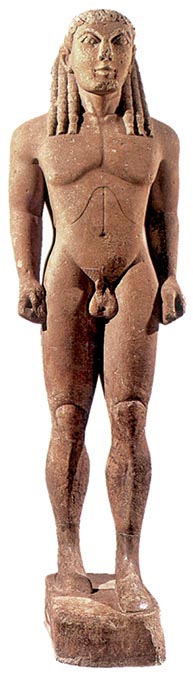 Polymèdes di Argo, Koúros, VII-VI sec. a.C. Marmo, alt. 216 cm. Delfi, Museo.