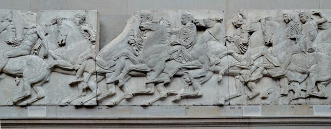 Fidia, Frammenti del fregio del Partenone con la Gara dei cavalieri nella processione delle Panatenaiche. Londra, British Museum.