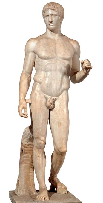 Policleto, Doriforo, 440 a.C. circa. Copia romana in marmo. Alt. 212 cm. Napoli Museo Nazionale.