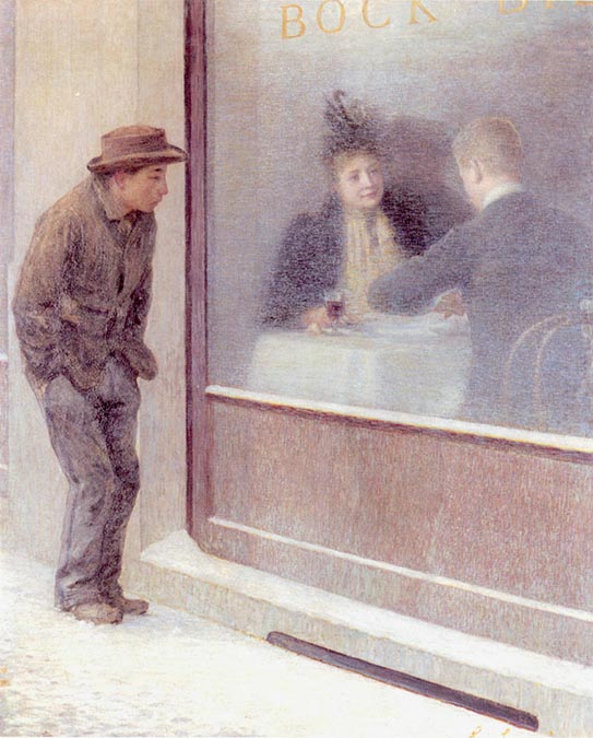 Emilio Longoni, Riflessioni di un affamato (o Contrasti sociali), 1894. Olio su tela, 190x155 cm. Biella, Museo del Territorio Biellese.