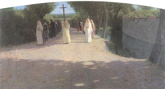 Giuseppe Pellizza da Volpedo, La Processione, 1894. Olio su tela, 84x155cm. Tortona, Pinacoteca Fondazione Cassa di Risparmio di Tortona.