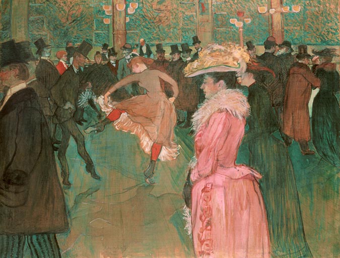 Henri de Toulouse-Lautrec, Addestramento delle nuove arrivate da parte di Valentin le Désossé (Moulin Rouge), 1890. Olio su tela, 115x150 cm. Philadelphia, Museum of Art.