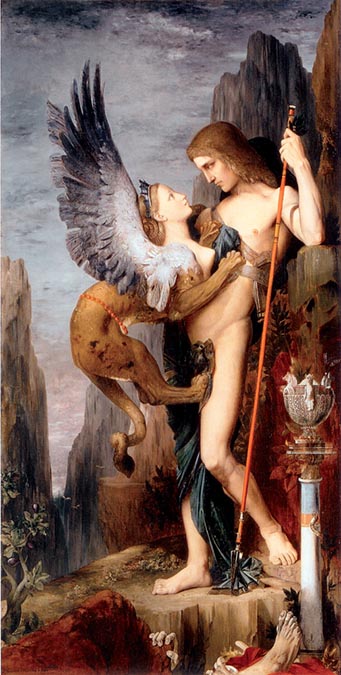 Gustave Moreau, Edipo e la Sfinge, 1864. Olio su tela, 206,4x104,8 cm. New York, Metropolitan Museum.
