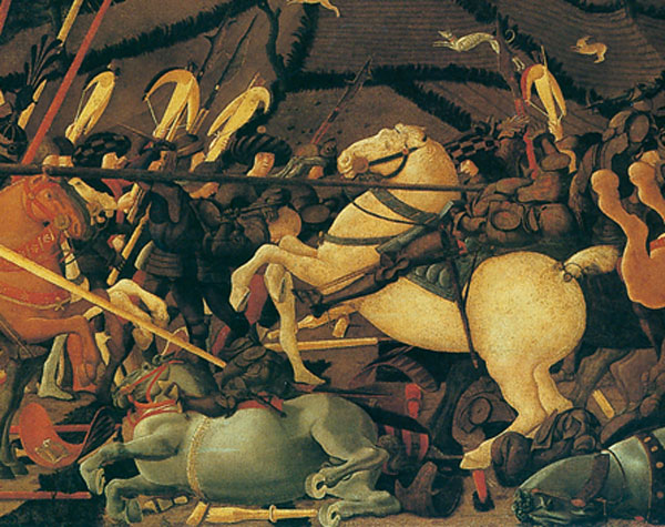 La produzione del pittore fiorentino Paolo Uccello (1397-1475) si inserisce nella fase di passaggio tra la cultura tardo-gotica e quella rinascimentale. Formatosi presso la bottega di Lorenzo Ghiberti, tra il 1425 e il 1430 soggiornò a Venezia, impegnato nei mosaici della Basilica di San Marco.