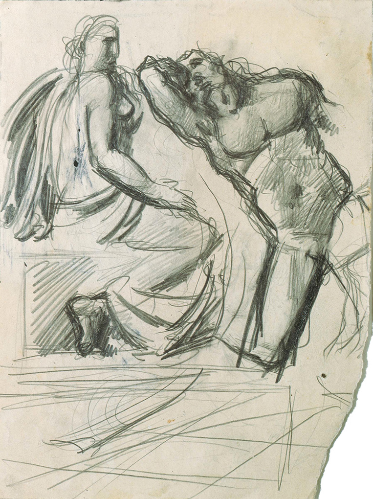 Mario Sironi, Nudi, 1935 ca. Matita su carta, 24x18 cm. La matita si presta egregiamente a disegni preparatori di affreschi.
